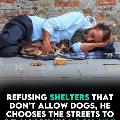 Despite having almost nothing, he chooses to give everything he can to protect them. He has turned down shelters because they wouldn’t allow pets, choosing to face freezing nights, hunger, and danger rather than abandon the loyal companions who have never abandoned him. His worn clothes, exhausted posture, and the unforgiving ground beneath him reveal a daily battle most people will never see — yet the tenderness in the way he holds his dogs speaks louder than any hardship.